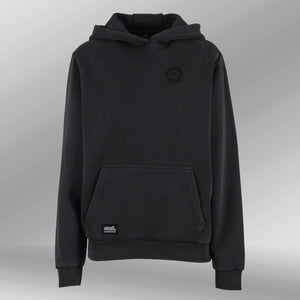 De Urban Ease Vintage Hoodie is waar comfort en karakter samenkomen. Gemaakt van zwaar katoen met gerecycled polyester, lekker voor de koudere dagen, voelt hij robuust aan maar blijft hij soepel en zacht door de geborstelde fleece binnenzijde. De washed black finish geeft elke hoodie zijn eigen, unieke vintage look, alsof hij al een leven vol verhalen heeft meegemaakt.