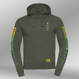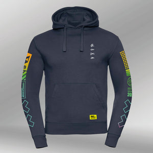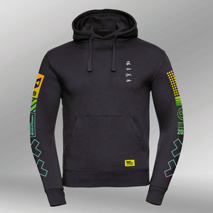 De Legacy Hoodie Majestic in zwart is een krachtige statement piece met een futuristische en sportieve uitstraling. Op de mouwen prijken abstracte graphics in neonkleuren die subtiel in elkaar overlopen, van felgeel en limegroen tot diep paars, wat de hoodie een energieke en vernieuwende uitstraling geeft. De linkerarm bevat een opvallende ‘Revolutionary’ patch, terwijl de rechterarm voorzien is van dynamische strepen, stippen en een kleine Urban Progress smiley. Met het kenmerkende Urban Progress-label op de buik in geel en een stevige capuchon met koordsluiting, is deze hoodie klaar voor actie en voor aandacht.