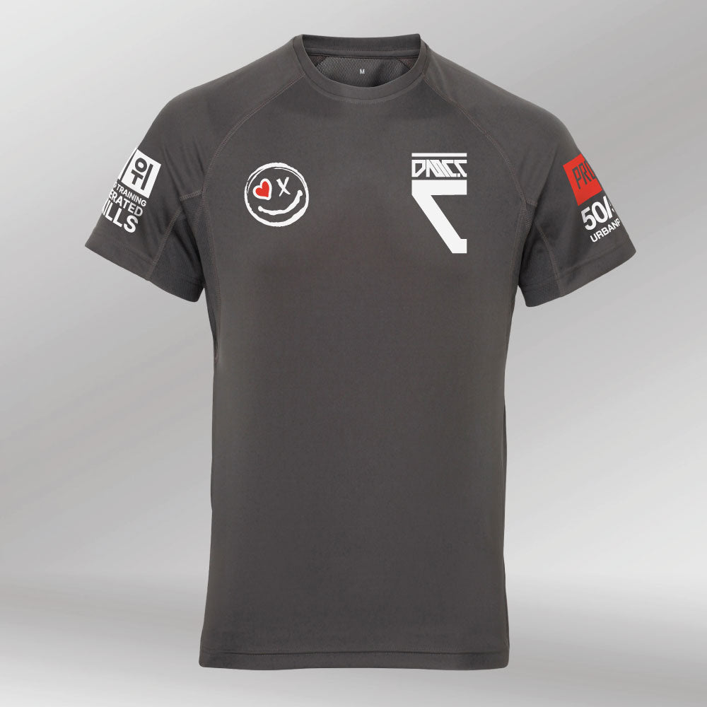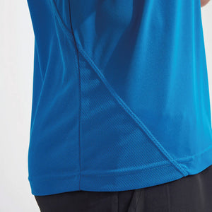De strategisch geplaatste mesh-panelen onder de armen en langs de zijkanten zorgen voor maximale ventilatie waar je die het meest nodig hebt. De raglanmouwen bieden volledige bewegingsvrijheid, terwijl de dubbele stiksels een duurzame afwerking garanderen. De ronde hals met zachte nektape maakt de pasvorm comfortabel en clean.