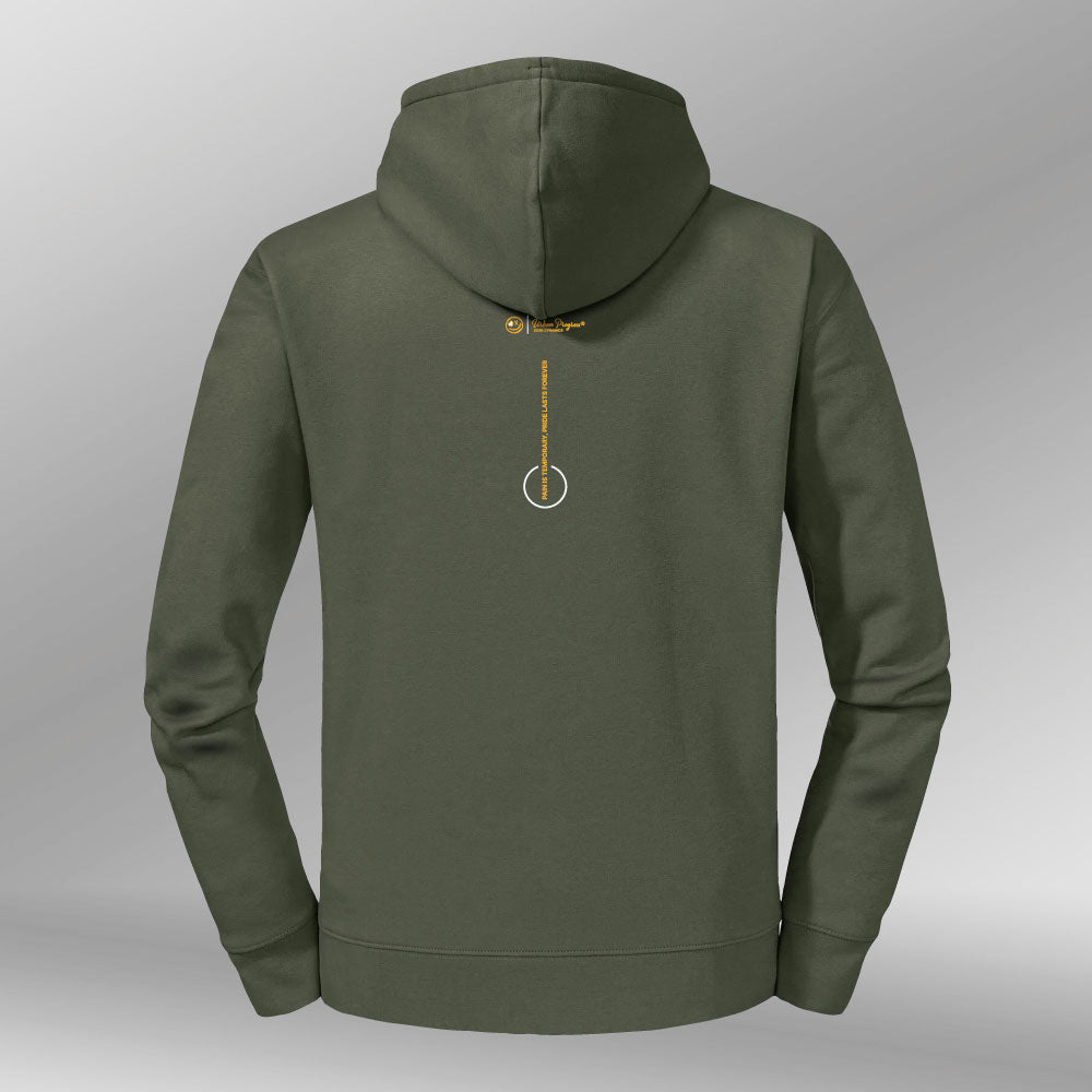 De cirkelvormige print op de borst staat voor flow, ritme en herhaling, de essentie van vooruitgang. Subtiele details op mouw en rug geven de hoodie een futuristische edge zonder te overdrijven. Minimalistisch in stijl, maximaal in impact. Draag ’m solo of als team, altijd krachtig. Altijd progressief.