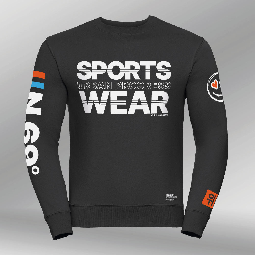 Geef je garderobe een sportieve boost met de Sweatshirt N.69 van Urban Progress Sport. Deze sweatshirt is perfect voor degenen die een frisse, energieke uitstraling willen, zowel in de sportschool als daarbuiten. Op de voorkant prijkt de opvallende tekst "SPORTS WEAR" in contrasterende witte letters, met daartussen "Urban Progress" in een moderne, strakke stijl. De slogan "Dutch Teamplayer" benadrukt de Nederlandse roots en teamspirit. De Sweatshirt N.69 verenigt functionaliteit met een inspirerend design, gemaakt voor elke sportliefhebber.