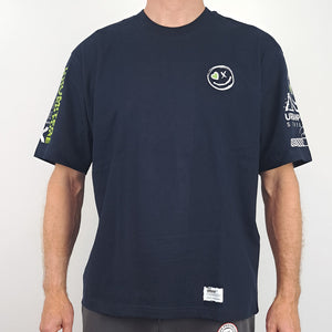 Maak indruk met dit heavyweight T-shirt dat staat als een huis. De Adventure is een statement. Oversized, krachtig en tot in de details doordacht. Van de subtiele smiley-badge op de borst tot de uitgesproken prints op beide mouwen