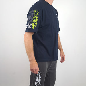 Gemaakt van zwaar, duurzaam katoen en ontworpen voor een relaxte, zelfverzekerde fit. De rechtermouw draagt de woorden Unlimited Adventure in fris limegroen, met daaronder: There is power through me. Een oproep tot actie. Op de linkermouw schittert de handtekeningstijl van Urban Progress, streetwear met karakter.