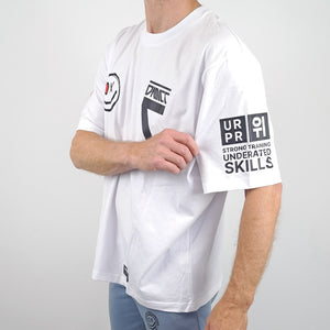 Strak wit. Bold design. Japanse invloeden en futuristische vibes. De Protocol Oversized T is geen basic tee. Met krachtige prints op borst, mouwen en rug vertelt dit oversized shirt het verhaal van urban discipline, underrated skills en next-level mindset.