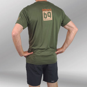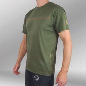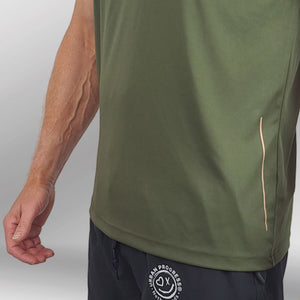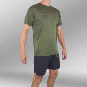 Dit sportshirt in diep olijfgroen is ontworpen om met je mee te bewegen, of je nu rent, traint of ontspant. Gemaakt van ultralicht en ademend materiaal dat zweet snel afvoert, zodat jij gefocust blijft op je doel.
