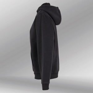 De Urban Ease Vintage Hoodie is waar comfort en karakter samenkomen. Gemaakt van zwaar katoen met gerecycled polyester, lekker voor de koudere dagen, voelt hij robuust aan maar blijft hij soepel en zacht door de geborstelde fleece binnenzijde. De washed black finish geeft elke hoodie zijn eigen, unieke vintage look, alsof hij al een leven vol verhalen heeft meegemaakt.